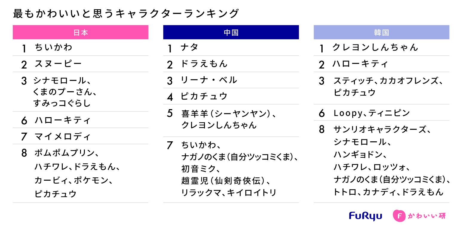 以上のように、自国生まれだけでなく他国のキャラクターについても、文化的な背景を軸にそれぞれの国における「かわいい」感性に響くキャラクターの様相に違いが見られる結果となりました。