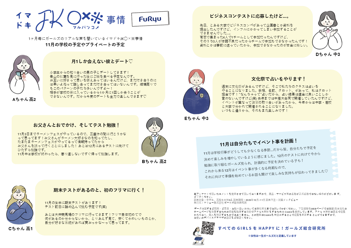 【毎月のJKの季節イベント事情】JK事情/25年11月 2025.11.28 この記事はメール会員登録でJK事情の高画質PDFデータがダウンロードが可能になりますので、ぜひダウンロードしてくださいね。 資料をダウンロード