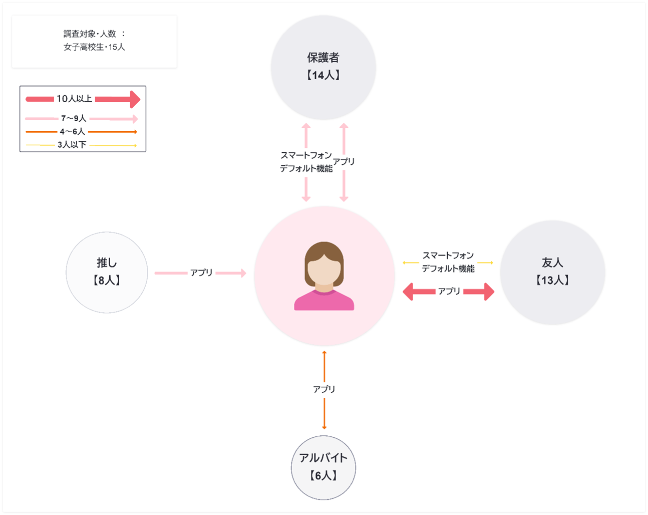 女子高校生15人中14人が「保護者」と日常的にやり取りをしていると答えました。