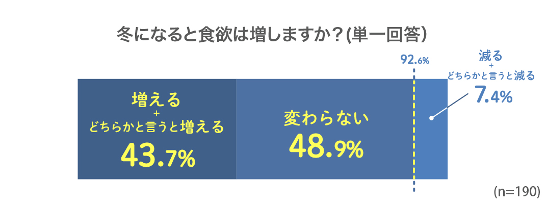 冬は食欲が増える人が43.7%。夏に比べて食欲増進傾向に