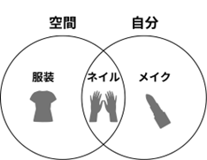 ネイルは「爪が写っても写真のクオリティを下げない」という空間軸と「爪は常に目に入るのでテンションを上げたい」という自分軸、両方の目的を満たすために選ばれているようです。
