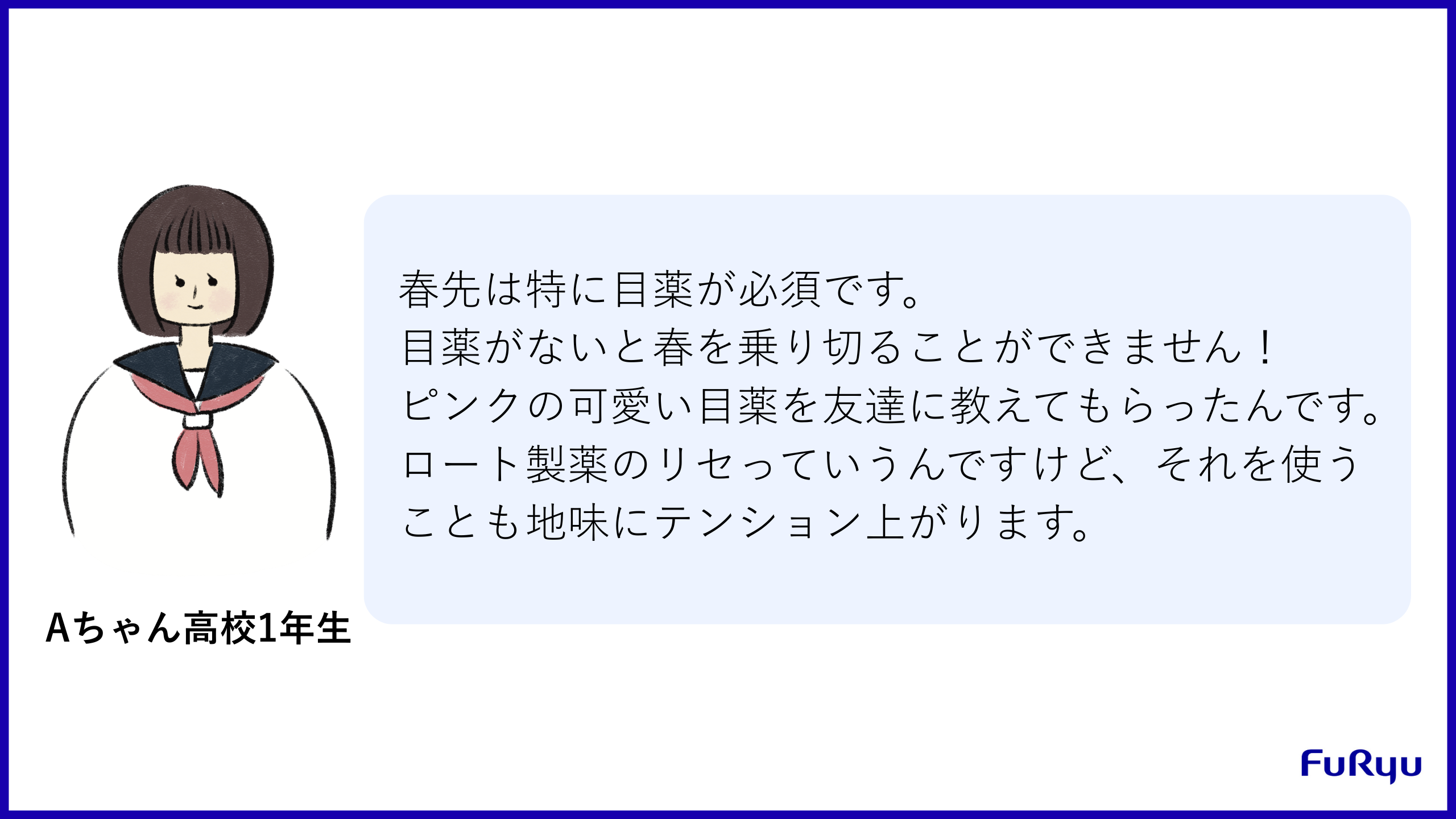 Aちゃんはデザインが可愛い目薬をすることで気分が上がるんだと教えてくれました。確かに、いつも使うものだからこそ、シンプルなものよりも可愛いものを使ってテンションを上げるのは素敵なことだなあと感じます。